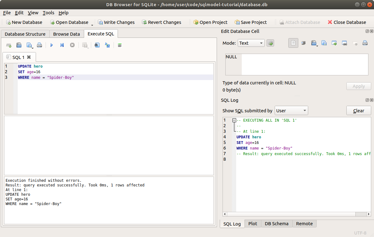 Now let's do the same update in code, with SQLModel.